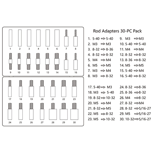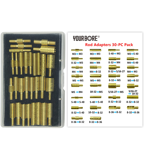 Pistoolin puhdistustangon kiinnityssovittimet 30 kpl pakkaus 5-40 8-32 10-32 5/16-27 M3 M4 M5 kierteet uros- ja naarasvarren liittimessä