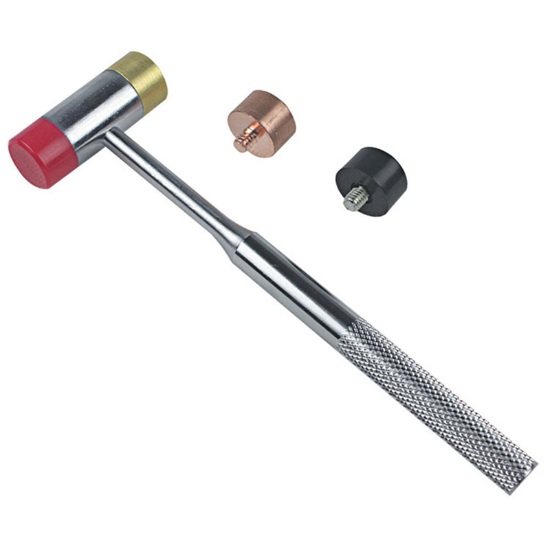 Vasara, jossa 4 korkkia Yksi messinki, yksi pronssi, yksi kumi, yksi nylon |