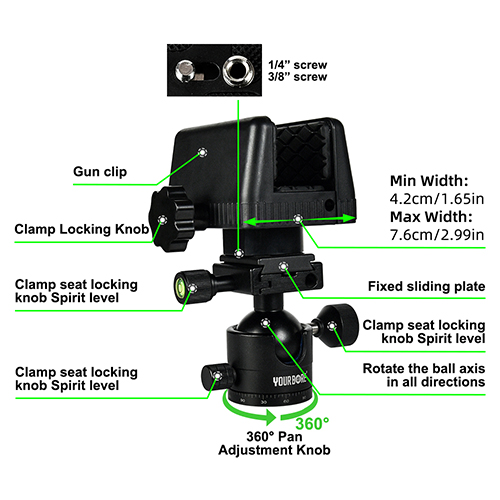 OEM CNC-alumiininen 360 asteen pallopään ammunta satulan tukikiinnike metsästysammuntamaila yksijalkaiseen kolmijalkaan