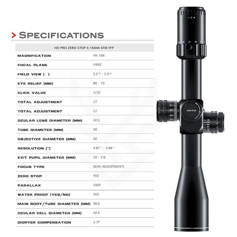 Optiikka HD PRO ZERO STOP 4-16x44 SFIR FFP High Isk Resistance Hunting