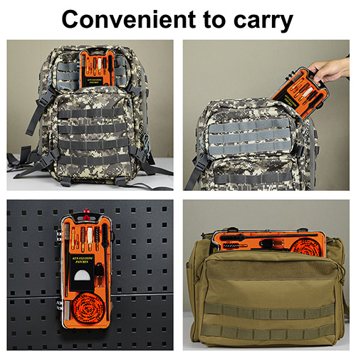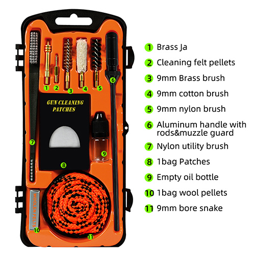 Universaali aseenpuhdistustyökalusarja Klassinen puhdistussarja, jossa on reikiä puhdistava käärmeköysi