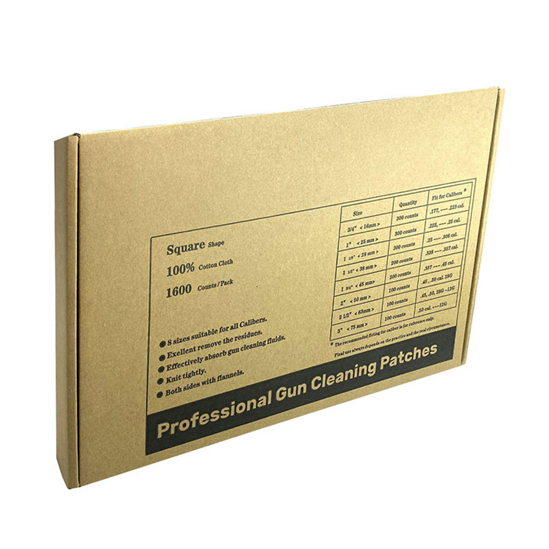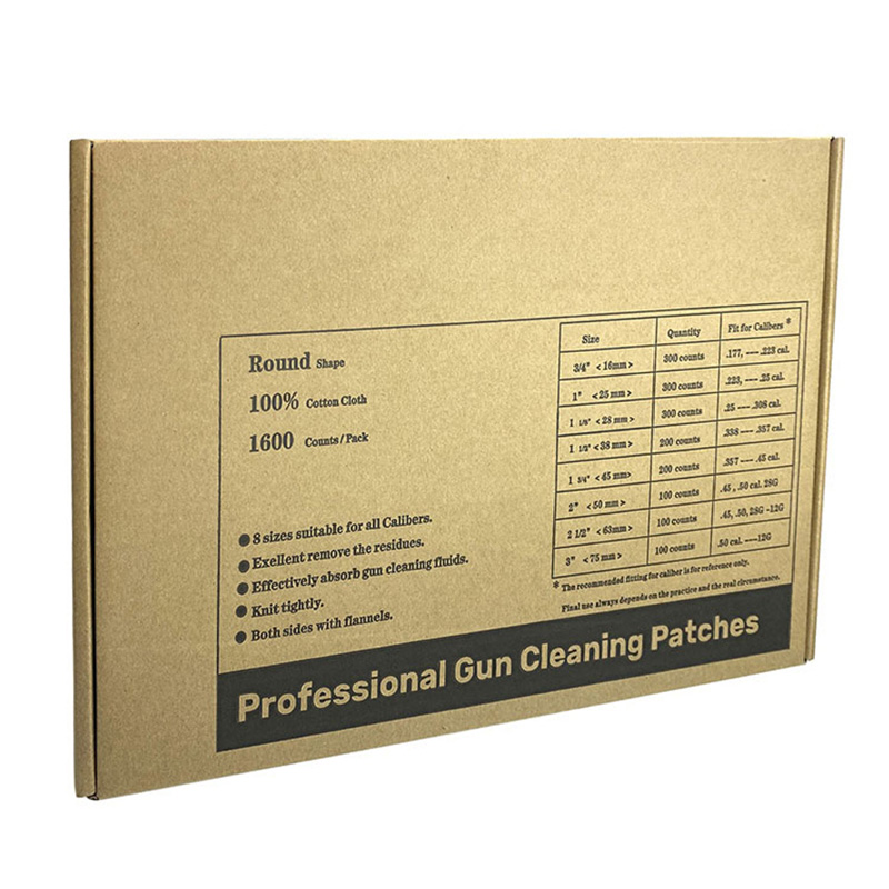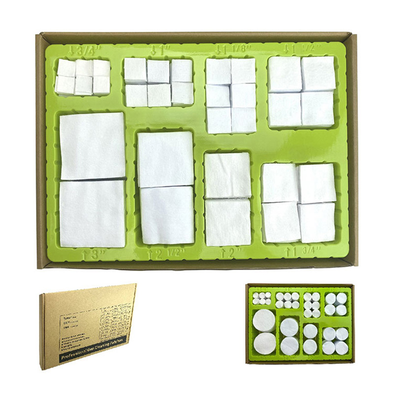 Universaali valkoinen puuvillakangas, neliön muotoinen aseen puhdistuslappu, läpipainopakkaus 8 kokoa, 1600 kappaletta ● 【All in One Combo Pack】8 koon puhdistuslaastareita sopii kaikkiin kaliipereihin 0,177 cal:iin asti. haulikko 12G; Säästä rahaa ja aikaa ostaaksesi erikokoisia eri kaliiperiaseitasi; ● 【Suuri imukykyinen puuvillamateriaali】 100 % puuvillamateriaali, joka imeytyy hyvin. Imee nopeasti loput nesteet, poistaa jäämät ja ruosteen porauksen pinnalta. ● 【Flanellikangas】 Flanellikangaspinta vahvistaa erittäin puhtautta. ● 【Jokainen koko lokerossa】Pakkaamme 8 kokoa 8 alustalla. Ja jokainen lokero, jonka koko on painettu lokeron viereen. Helppo löytää ja ottaa oikean kokoinen pakkauksesta. ● 【OEM】 Asiakaslogo on hyväksyttävä.