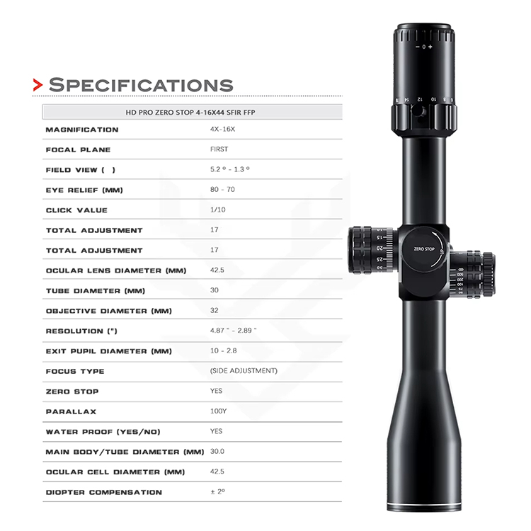ZERO STOP 4-16X44 SFIR FFP-A 30mm halkaisija HD valoa läpäisevä Zero Stop metsästystähtäin Ffp
